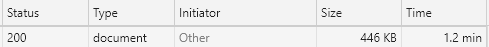 可以看到,446kb的内容获取了1.2分钟,查看响应headers发现未开启gzip压缩