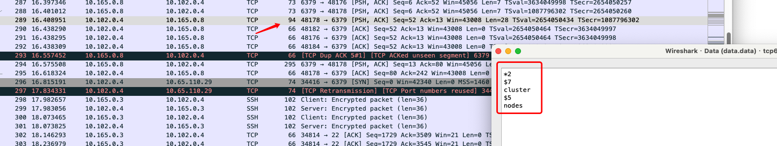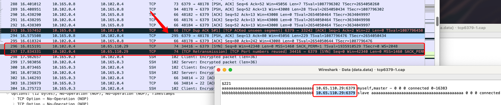 Redis正常返回了数据, 其中的内容刚好是Redis内网的端口, 并且在下一步, 立马出现了对于这个IP建立连接的SYN请求.